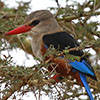 Half-collared kingfisher (Alcedo semitorquata) Shining-blue kingfisher (Alcedo quadribrachys) Malachite kingfisher (Corythornis cristatus) African pygmy-kingfisher (Ispidina picta) Woodland kingfisher (Halcyon senegalensis) Mangrove kingfisher (Halcyon senegaloides) Blue-breasted kingfisher (Halcyon malimbica) Brown-hooded kingfisher (Halcyon albiventris) Giant kingfisher (Megaceryle maximus) |