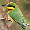 Red-throated bee-eater (Merops bulocki) White-fronted bee-eater (Merops bullockoides) Blue-breasted bee-eater (Merops variegatus) Cinnamon-chested bee-eater (Merops oreobates) Swallow-tailed bee-eater (Merops hirundineus) White-throated bee-eater (Merops albicollis) Böhm's bee-eater (Merops boehmi) Blue-cheeked bee-eater (Merops persicus) Madagascar bee-eater (Merops superciliosus) European bee-eater (Merops apiaster) Northern carmine bee-eater (Merops nubicus) Southern carmine bee-eater (Merops nubicoides) |