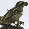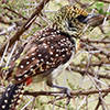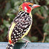 Crested barbet (Trachyphonus vaillantii) Gray-throated barbet (Gymnobucco bonapartei) White-eared barbet (Stactolaema leucotis) Whyte's barbet (Stactolaema whytii) Green barbet (Stactolaema olivacea) Moustached tinkerbird (Pogoniulus leucomystax) Green tinkerbird (Pogoniulus simplex) Red-fronted tinkerbird (Pogoniulus pusillus) Yellow-fronted tinkerbird (Pogoniulus chrysoconus) Yellow-spotted barbet (Buccanodon duchaillui) Hairy-breasted barbet (Tricholaema hirsuta) Miombo barbet (Tricholaema frontata) Spot-flanked barbet (Tricholaema lachrymosa) White-headed barbet (Lybius leucocephalus) Red-faced barbet (Lybius rubrifacies) Black-billed barbet (Lybius guifsobalito) Black-collared barbet (Lybius torquatus) Brown-breasted barbet (Lybius melanopterus) Black-backed barbet (Lybius minor) Double-toothed barbet (Lybius bidentatus) |